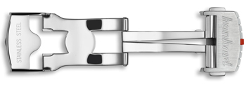 The Hanhart logo is embossed across the top of both sides of the strap, and the stainless steel deployant buckle (also featuring the Hanhart logo) offers a comfortable fit while making it simple to put on and take off the watch.
